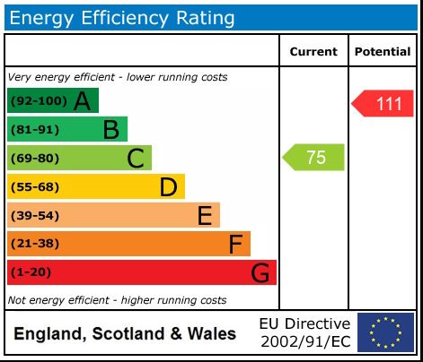 Entrance Hallway. Lounge with wood burning stove. Superb fitted kitchen with built-in oven, hob, microwave, extractor, fridge/freezer, dishwasher and washing machine. Master bedroom with ensuite shower room. Further double bedroom. Family bathroom/WC/Shower. Enclosed lawned garden facing toward open countryside. Off-road parking space.